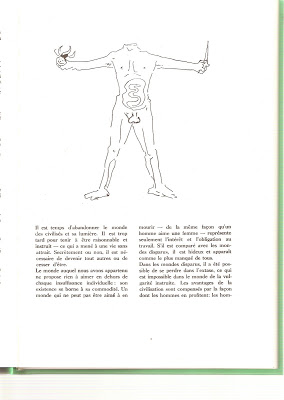 Trobà més enllà de si mateix no a Deu, que és la prohibició del crim, sinò a un esser que ignora la prohibició. Més enllà del que soc, retrobo un esser que em fa riure perquè no té cap, que m’omple d’angoixa perquè està plé d’inocencia i de crim: té una arma de ferro a la seva mà esquerra, flames que semblen un cor de sacrifici a la seva dreta. Reuneix en una mateixa erupció el Naixement i la Mort. No és un home. Tampoc és un deu. No és jo, però és més jo que jo: el seu vente és el Dédal que es va perdre a si mateix, en el que em perdo amb ell i en el que em torno a trobar sent ell, es a dir, monstre.
